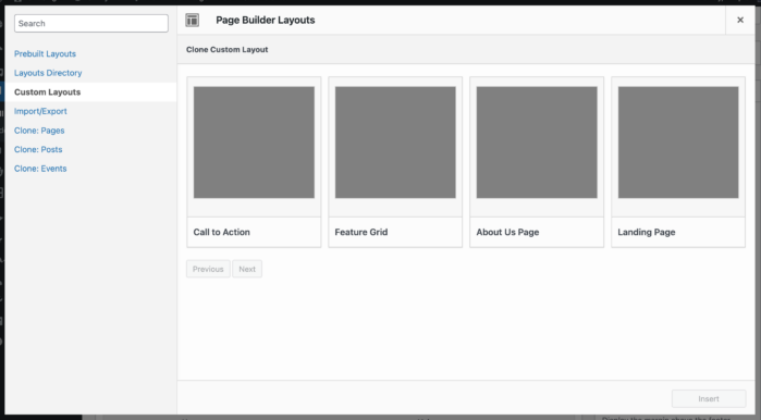 Save layouts and sections as Custom Layouts and manage them from a central location in your WordPress dashboard.