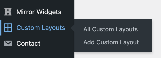 - Open Custom Layouts in your WordPress dashboard to view and manage saved layouts.