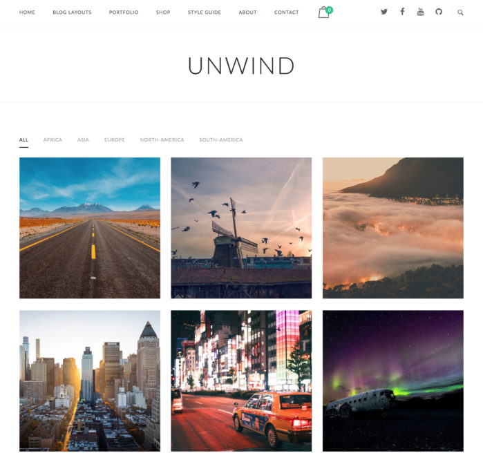 We’re really pleased to announce Unwind now offers support for Jetpack Portfolio custom post type. If you have a portfolio of any sort that you’d like to show off, Jetpack Portfolio is a great way to do it. View our photography portfolio demo. In this case we’ve built a small portfolio of travel photos. You can use this great feature for showing off a portfolio of any kind of work.